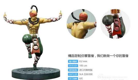 使用SLA光固化3D打印技術(shù)來制作動漫、游戲、電影角色手板是絕佳的選擇,對于《英雄聯(lián)盟》的忠實玩家,可以擁有一個盲僧的人物角色是十分令人期待的。這是由魔猴網(wǎng)使用SLA光固化3D打印機所打印出的盲僧手板,打印出的白模再配合上色師傅的高超手藝,即可讓它栩栩如生,而且可以根據(jù)用戶的需求來定制化打印。