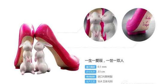 包貝爾婚禮專屬定制的新娘婚鞋則是刷爆了網(wǎng)絡(luò),眾明星紛紛被這雙鞋萌到了并發(fā)布微博,而這雙鞋實際上也是使用SLA 3D打印技術(shù)所實現(xiàn), 配合后期上色處理,徹底萌化人心。