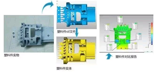 三維掃描系統(tǒng)能在極短時間內(nèi),對結(jié)構(gòu)復雜、曲面較多的配件或者難以成型的大型汽車樣件,進行快速掃描,制造出高精細度高的產(chǎn)品。利用三維數(shù)據(jù)可以對原有數(shù)模進行分析檢測,最大限度保證了配件及模具的質(zhì)量;利用三維數(shù)據(jù)進行逆向建模,可以提高設(shè)計師的工作效率和設(shè)計質(zhì)量,從而保證模具的生產(chǎn)時間。