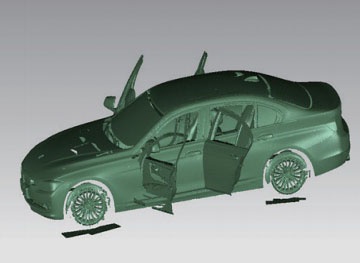 采用高精度攝影測量系統(tǒng)與3DSS三維掃描儀配合使用的方法,可以完成對大型物品的三維外觀掃描,如汽車、戰(zhàn)斗機、船模、大型鑄造件等,可掃描10多米的物品。